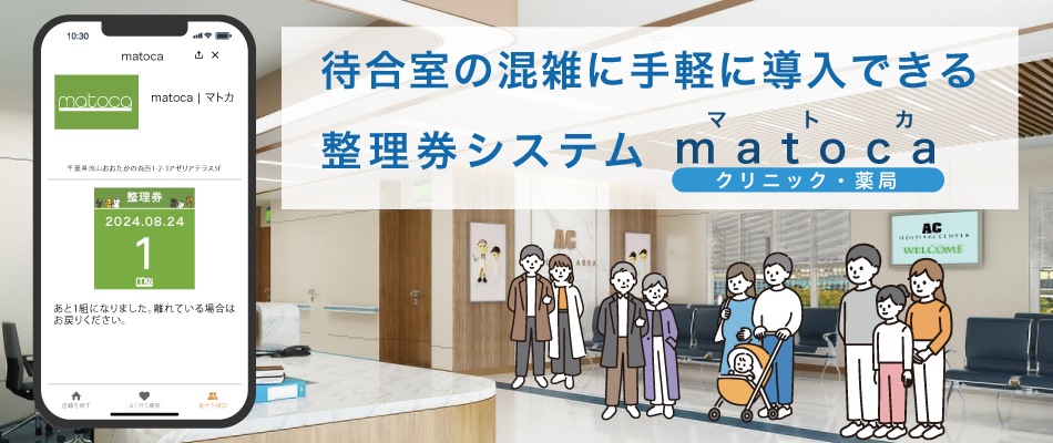 「matoca|マトカ」は、LINEに呼出通知を送れる整理券システムです。手軽に導入でき、待合室の混雑解消になります。